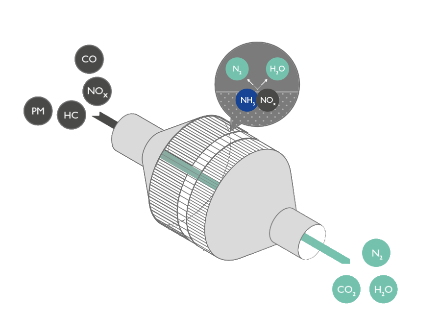 The “two-way” converters are still used in lean-burn engines, due to high oxygen excess present in the exhaust gas that severely poisons the metal catalyst (Rh) which conducts the NOx reduction.